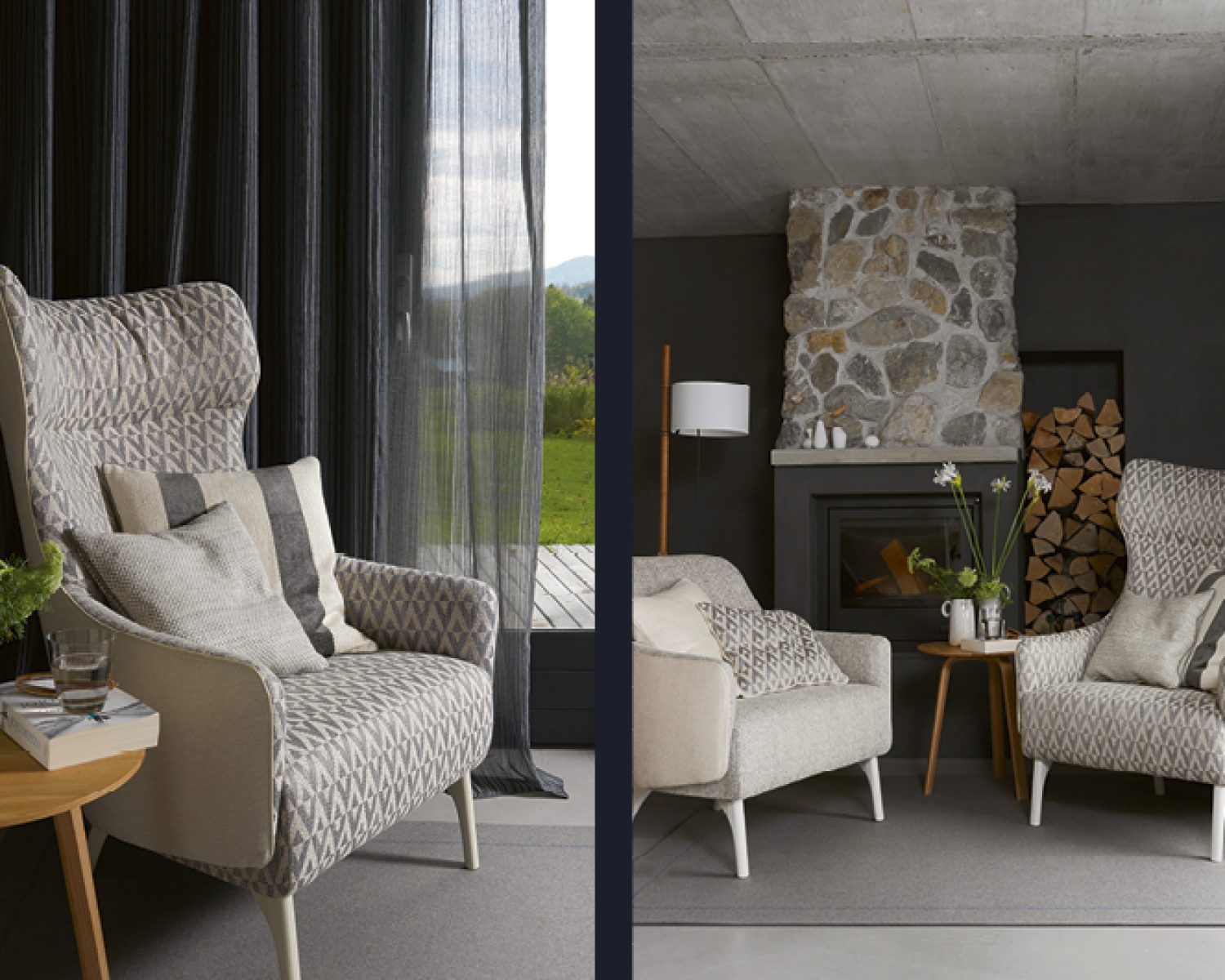 Neue Generation – aktive und schwer entflammbare Stoffe. Gardinenstangen und Lamellenanlagen vervollständigen das Programm.